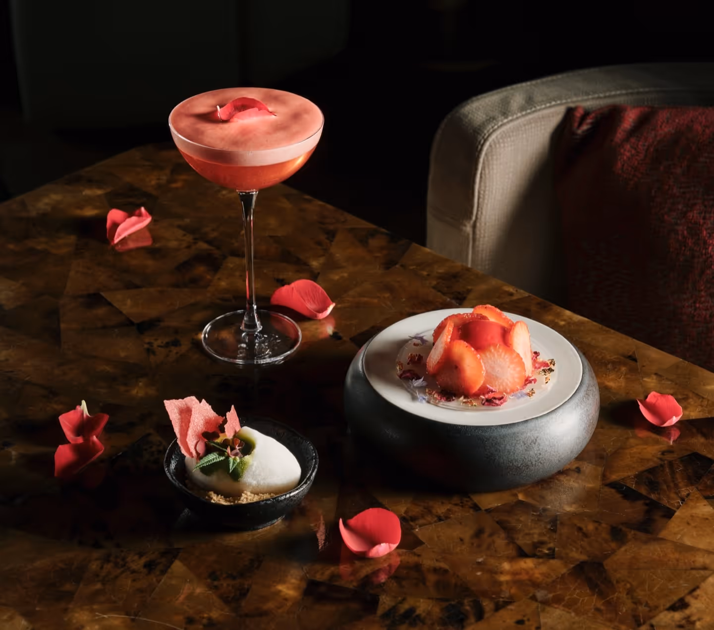 This alluring Valentine’s menu showcases the Abalone Soba Mai Juk and tender Australian Wagyu Short Rib MB5, culminating in a delicate Opalys Yuzu Mousse for a spectacular flourish.